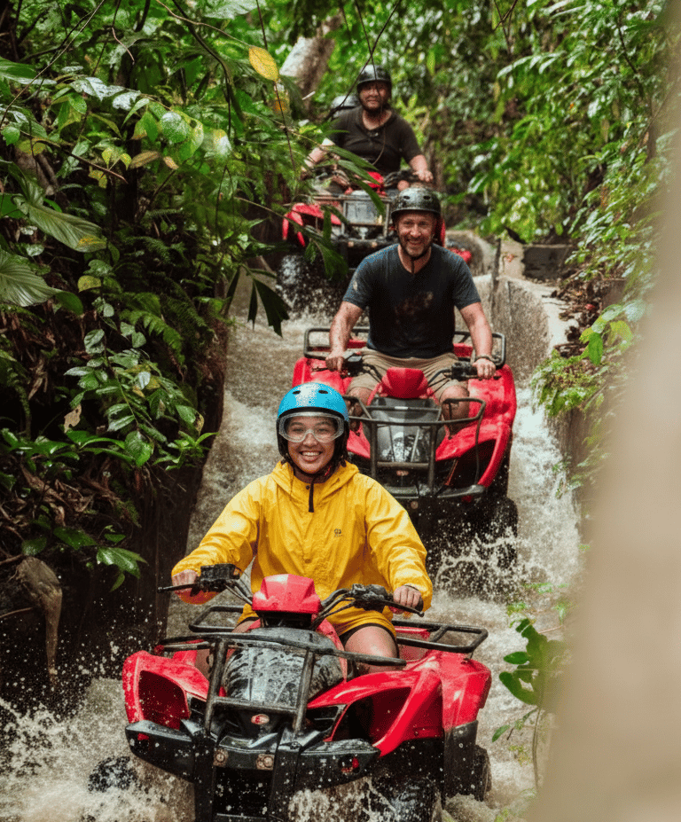 Start your morning with an exciting white-water rafting adventure, paddling through lush jungles and scenic rivers. Then continue your thrill with an ATV ride through rice fields, waterfalls, tunnels, and muddy jungle trails — a true Bali adventure you’ll never forget, We offered two options: Adventure & Beginner ATV Tracks.