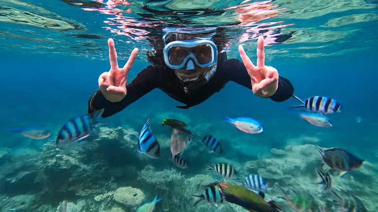 Experience the top-rated Nusa Penida Snorkeling Trip with 4 iconic spots: Manta Bay, Crystal Bay, Gamat Bay, and Wall Bay. Includes hotel transfer, fast boat tickets, lunch, GoPro photos, and full equipment. Perfect for couples, families, and adventure seekers.